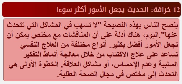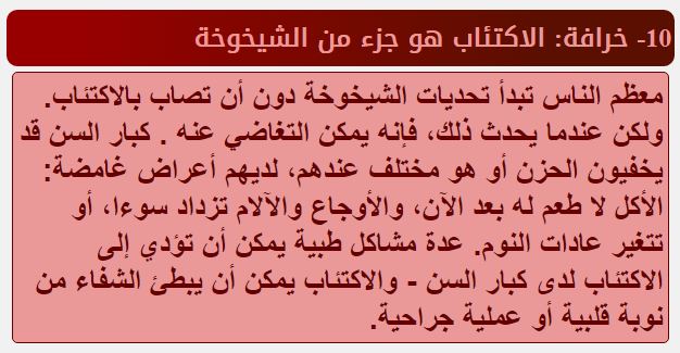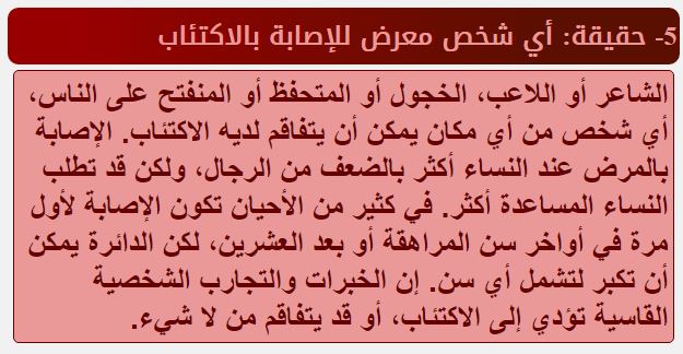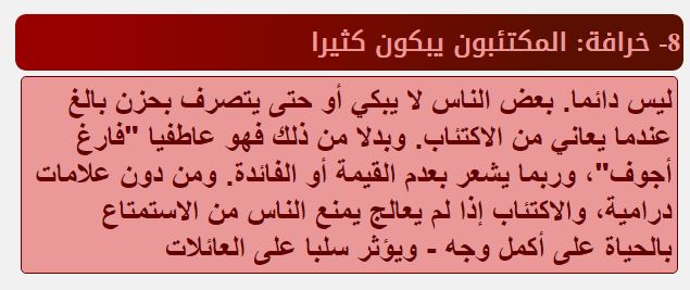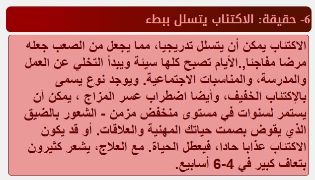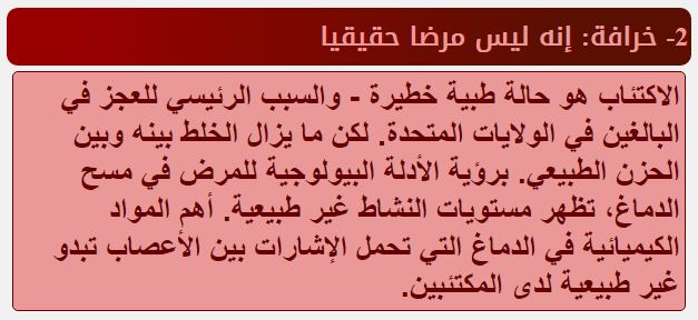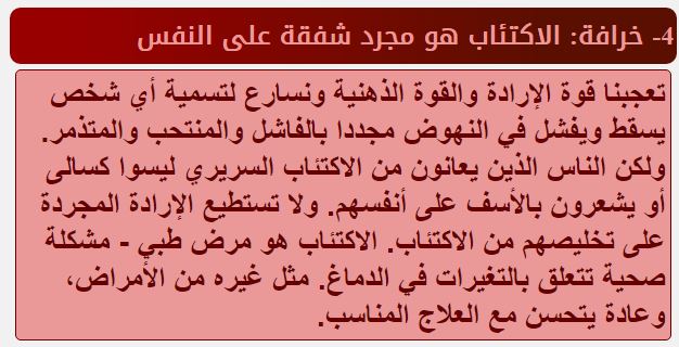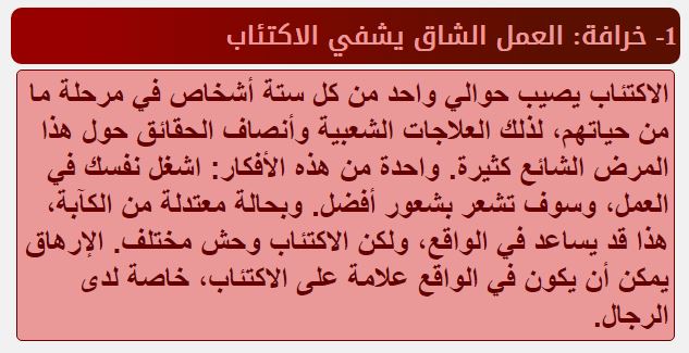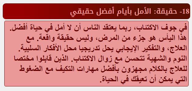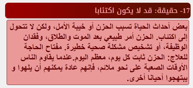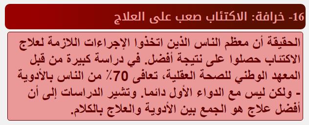 حقائق وخرافات عن الاكتئاب 23/07/2016 mhahmt الاكتئاب 0 18لوحة عن الاكتئاب هي ترجمة لهذه الشرائح المتحركة من الموقع المهتم بالصحة http://www.webmd.com/depression/ss/slideshow-depression-myths